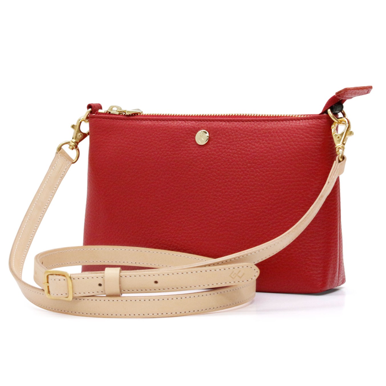 シュリンクレザーアクセサリーポーチ&ショルダーストラップセット(レッド)