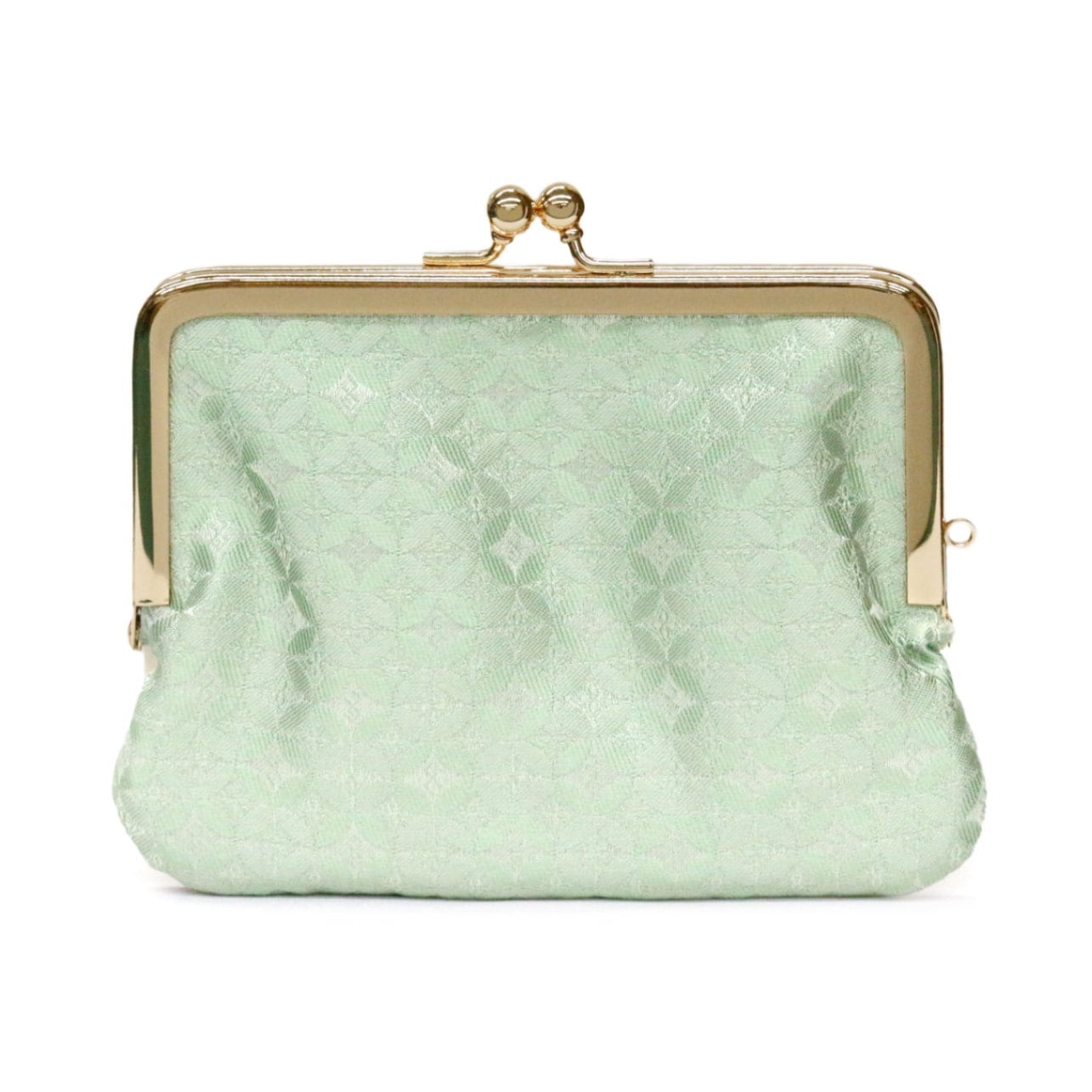 ふじやま織シルクがま口財布(ブロックチェック×ホワイトシルバー)