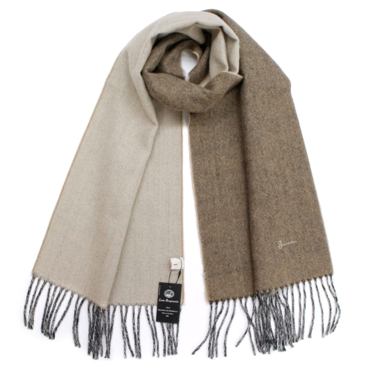 ふじやま織 素肌に優しいちくちくしないキャッシュウールマフラー(サンドベージュ×オフホワイト)