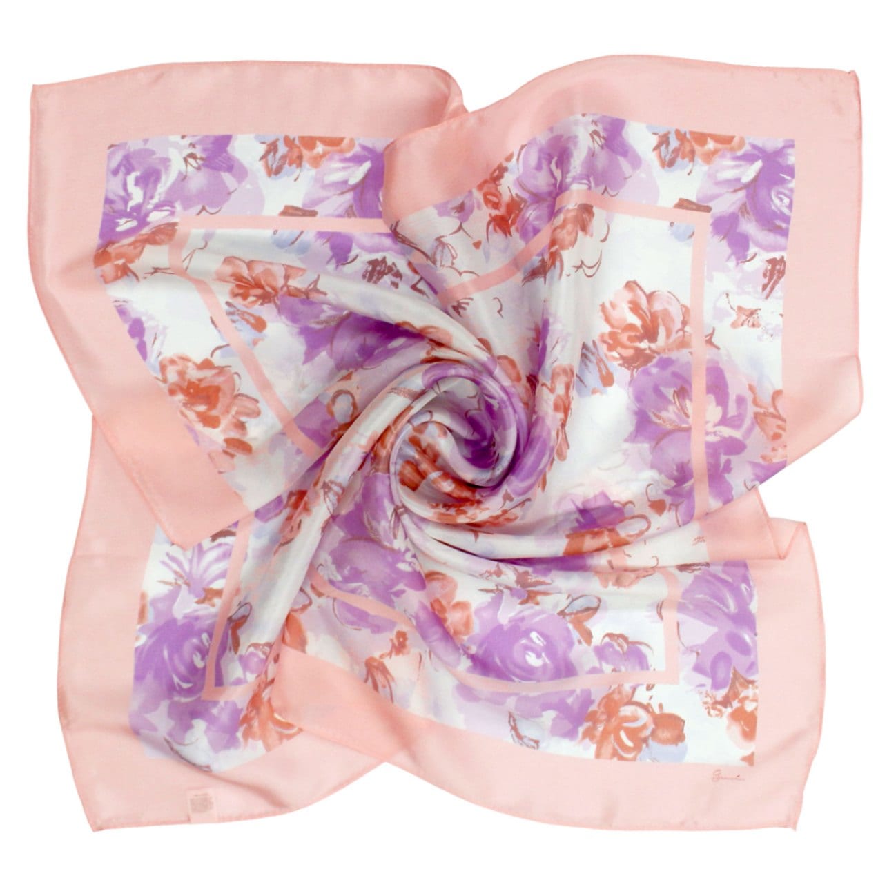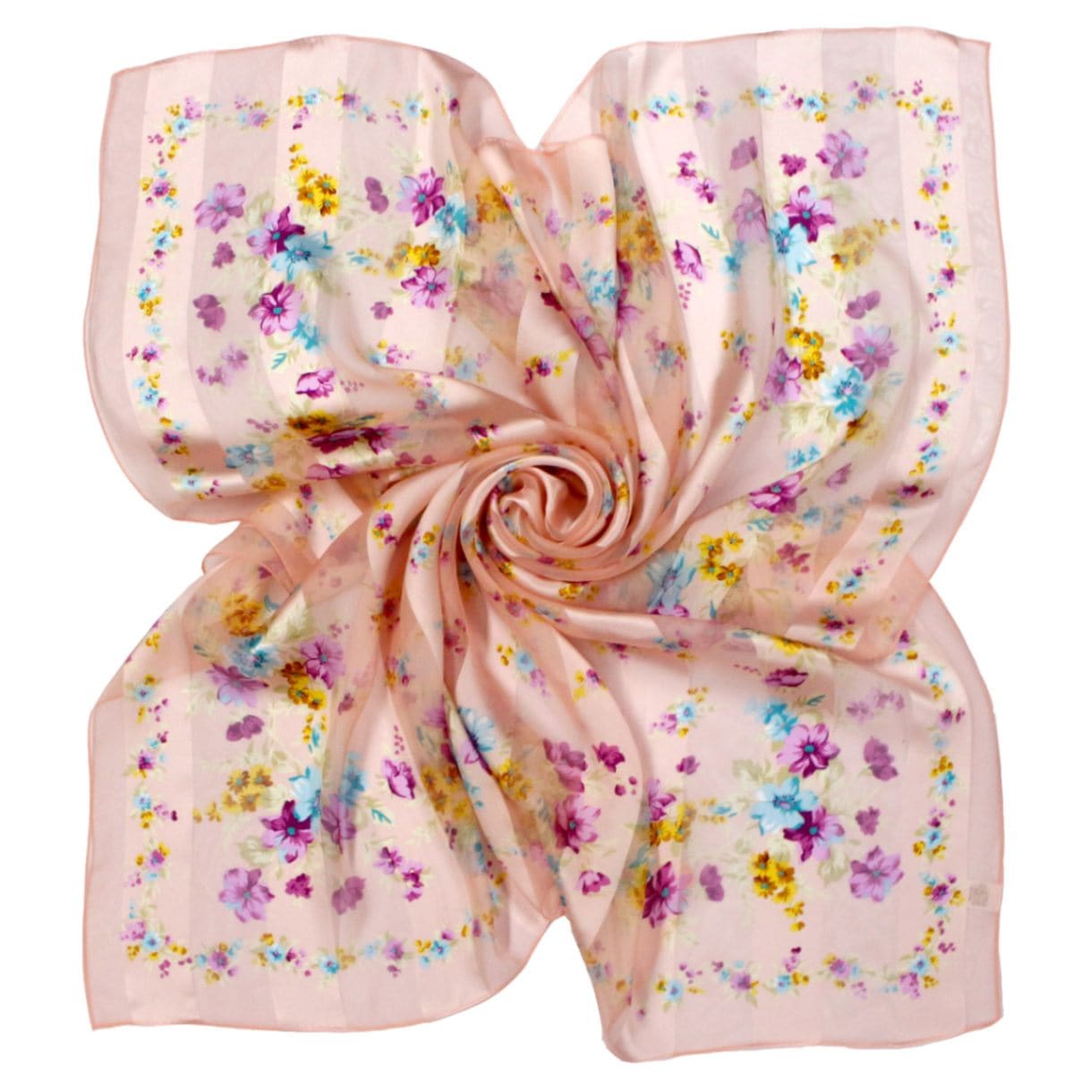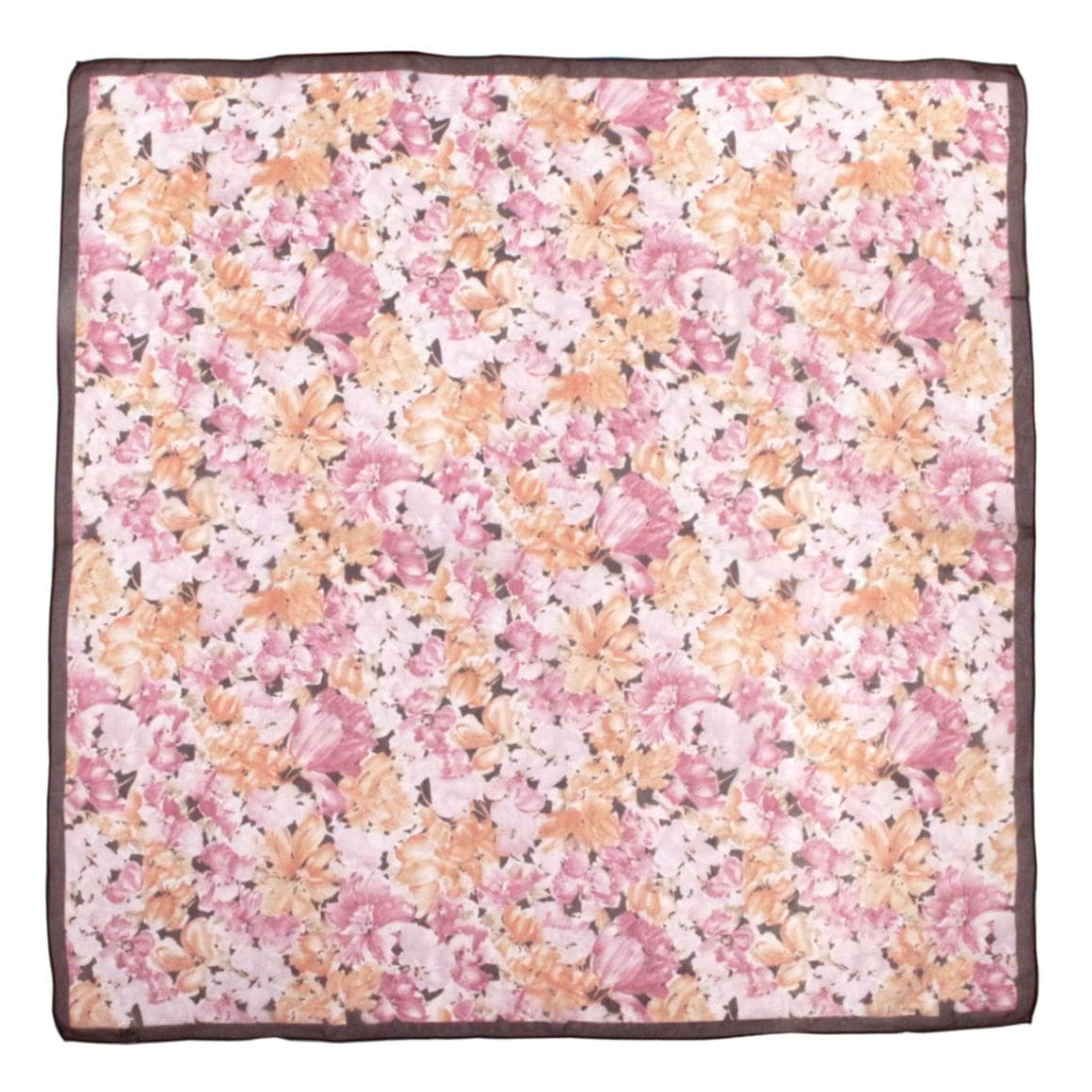 シルクスカーフ 88×88(O-花柄A-ピンク/サテンストライプ)