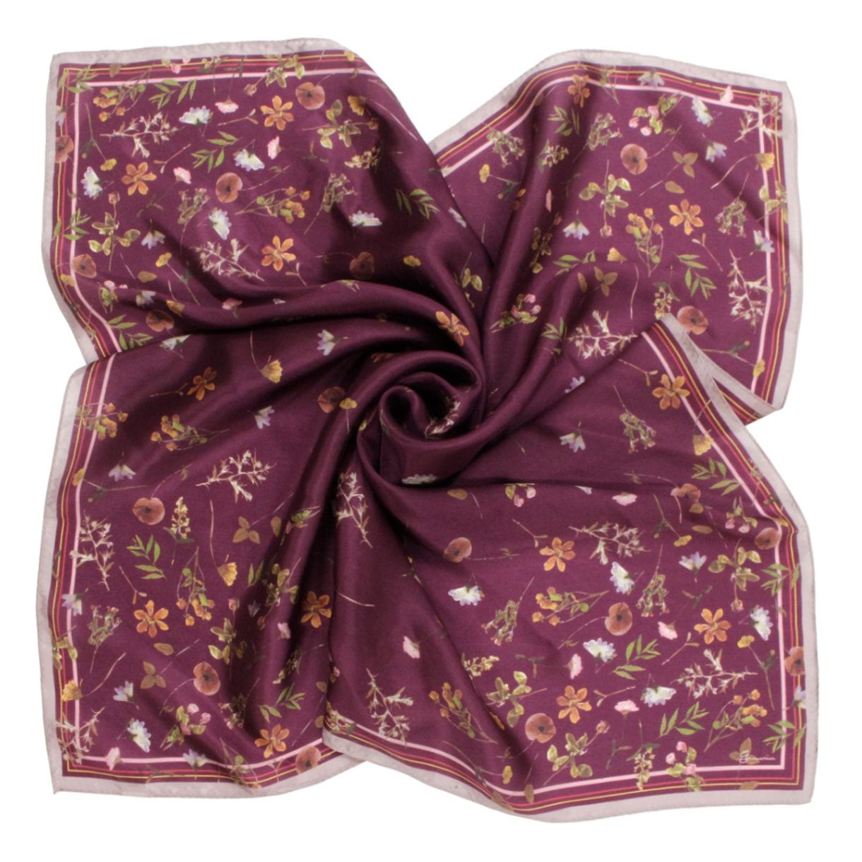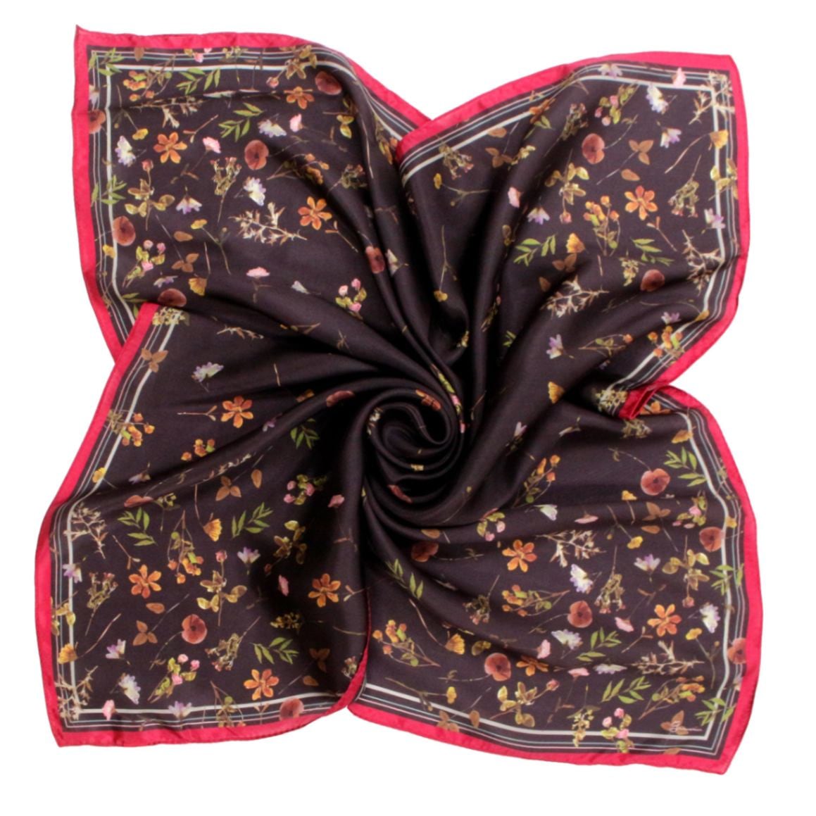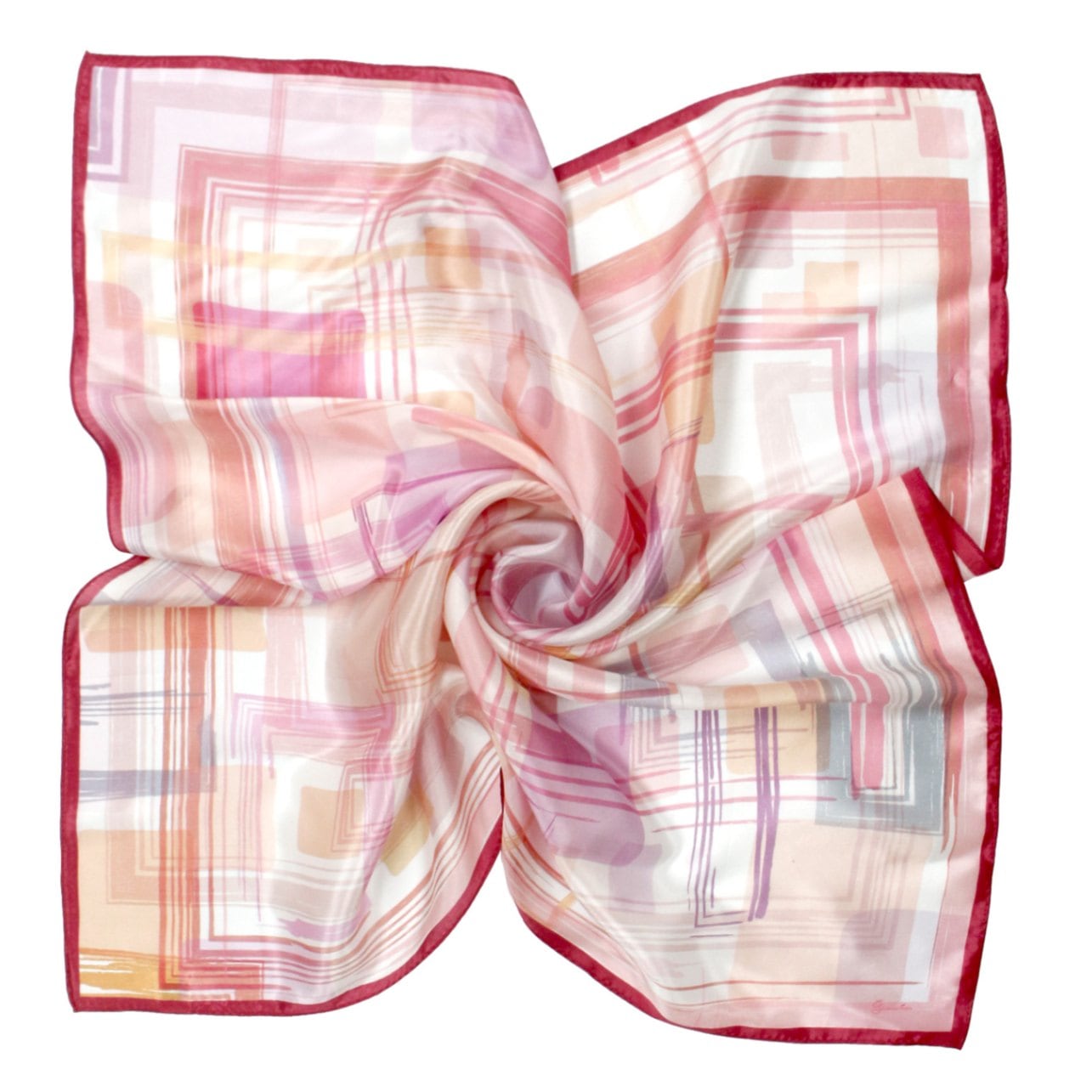 シルクスカーフ 88×88(O-花柄A-ピンク/サテンストライプ)