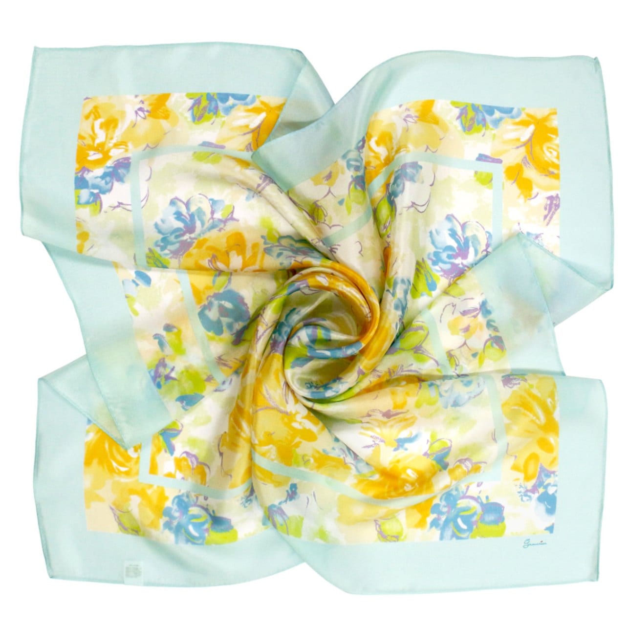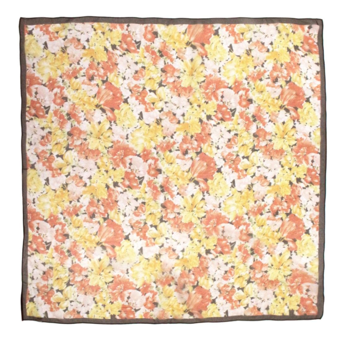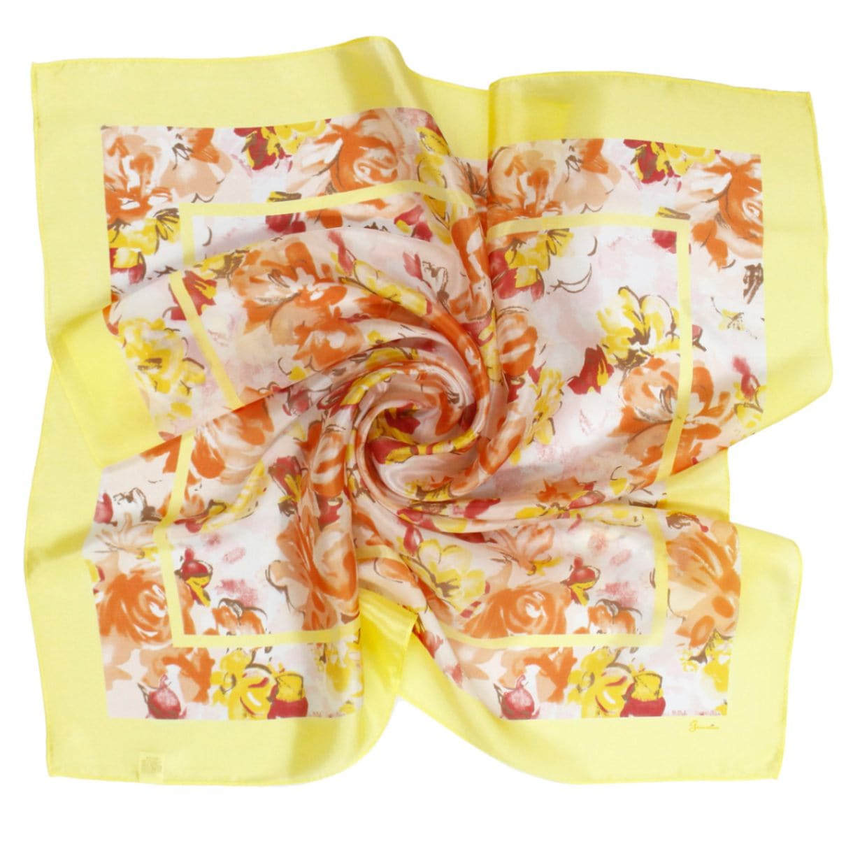 シルクスカーフ 88×88(O-花柄A-イエロー/サテンストライプ)