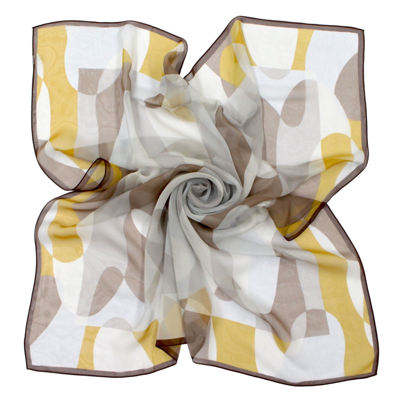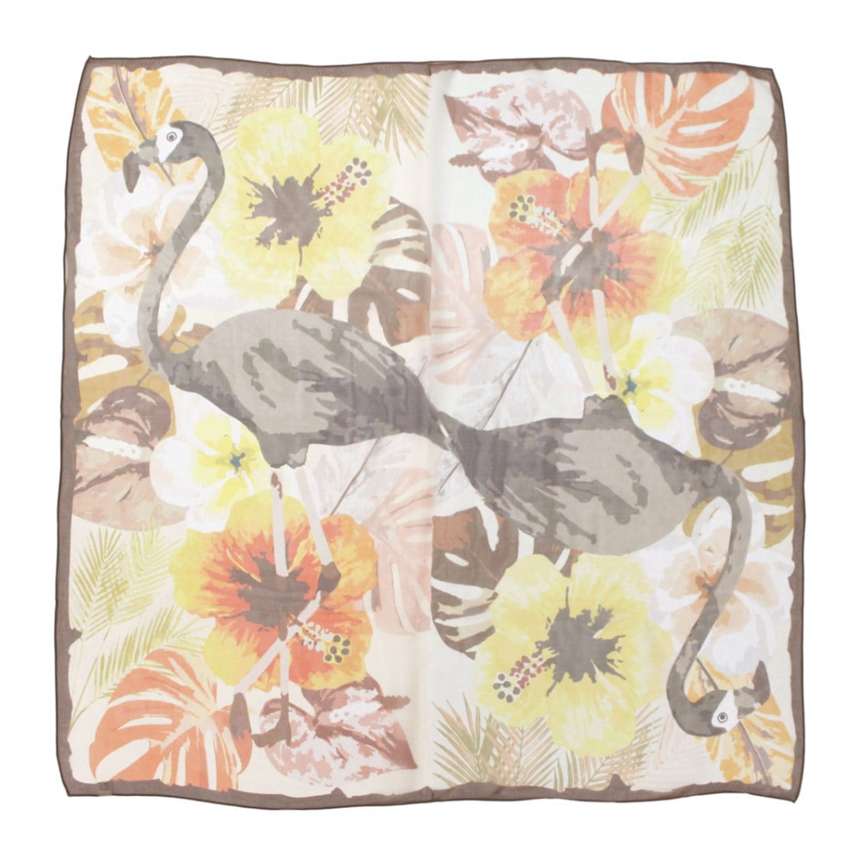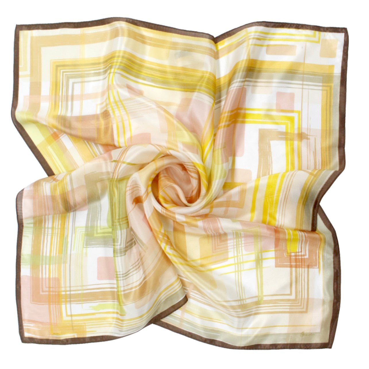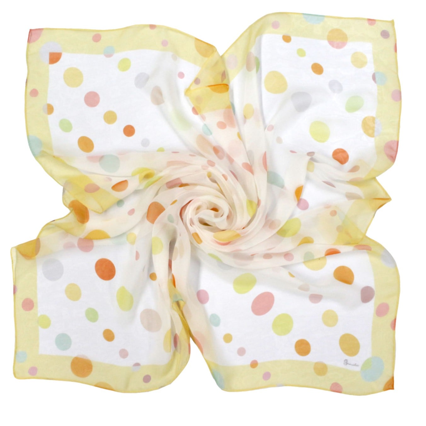 シルクスカーフ 88×88(O-花柄A-イエロー/サテンストライプ)