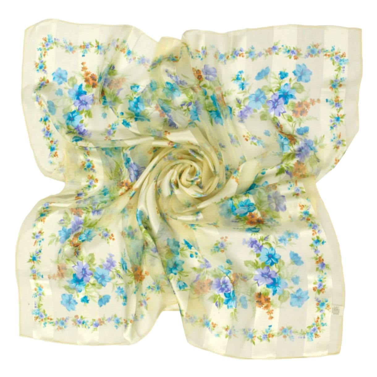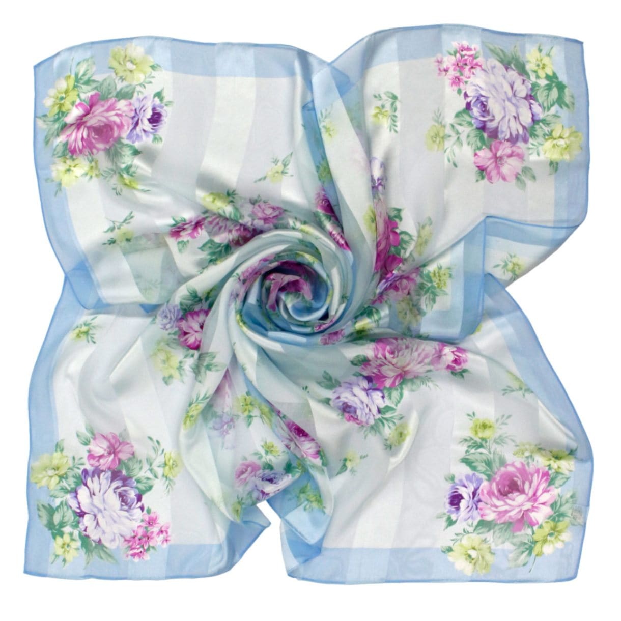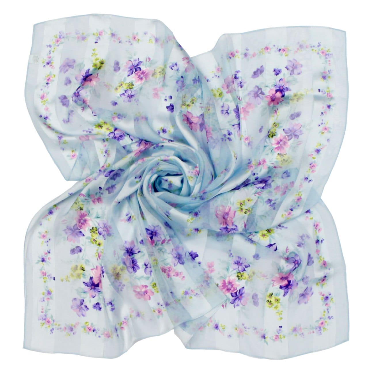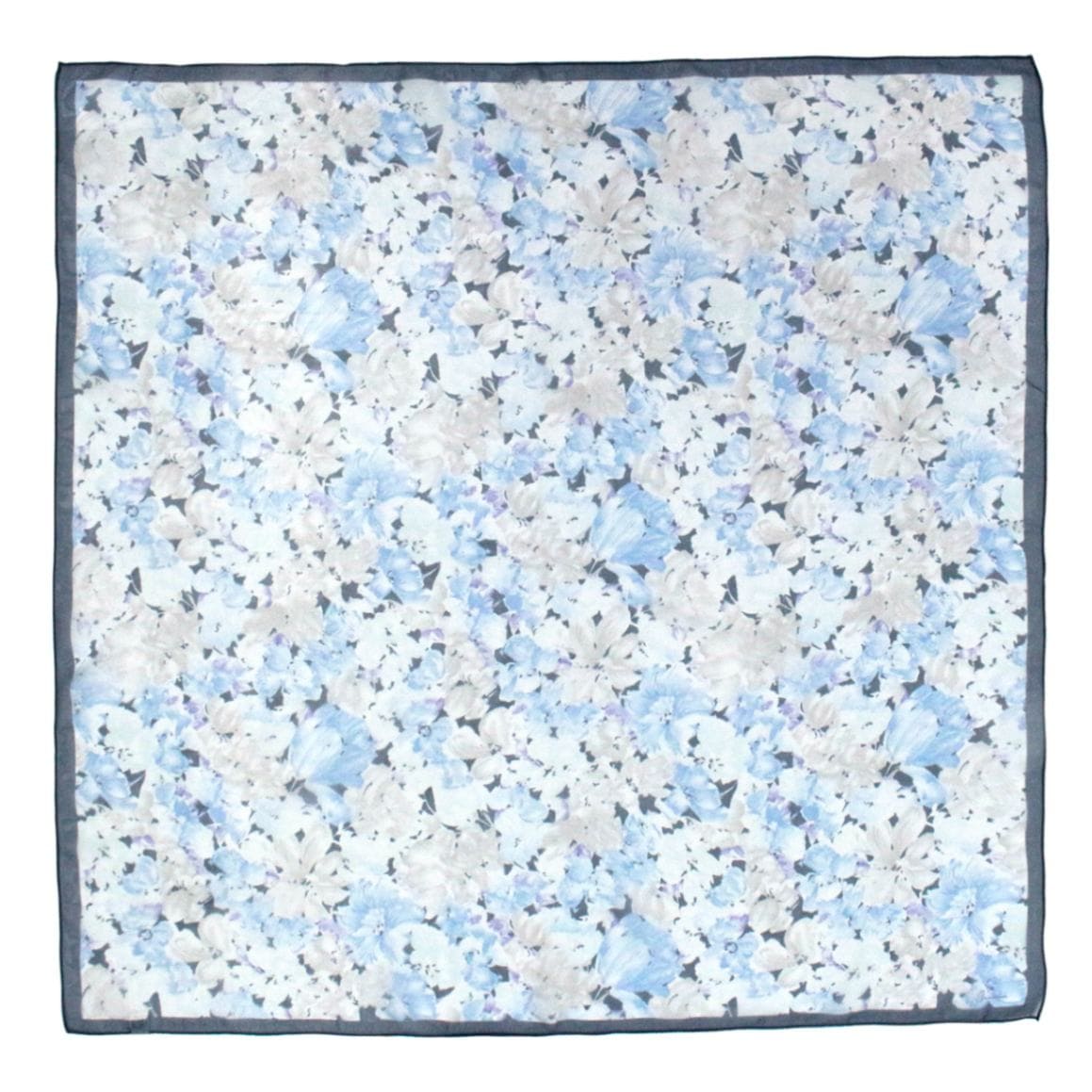 シルクスカーフ 88×88(O-花柄B-サックス/サテンストライプ)