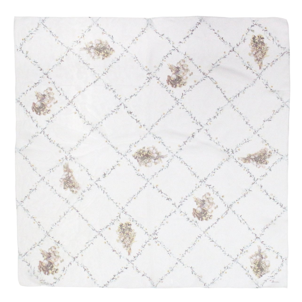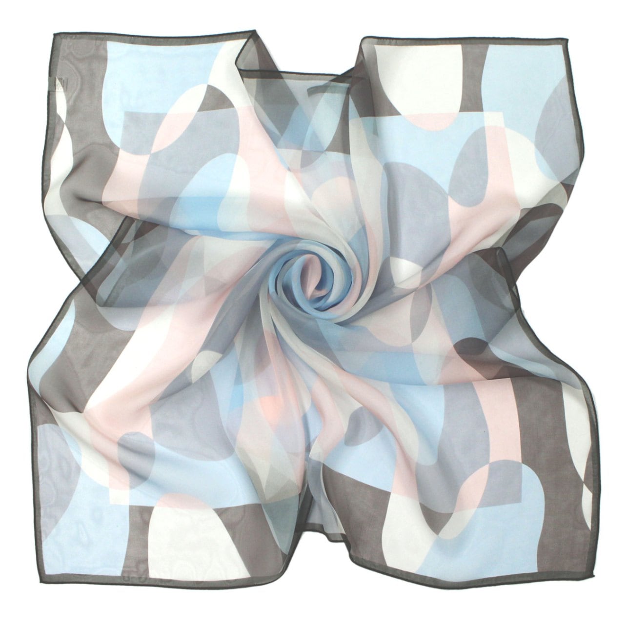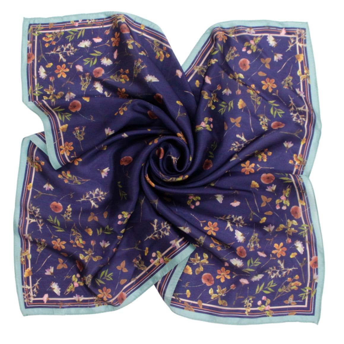 シルクスカーフ 88×88(O-花柄B-サックス/サテンストライプ)