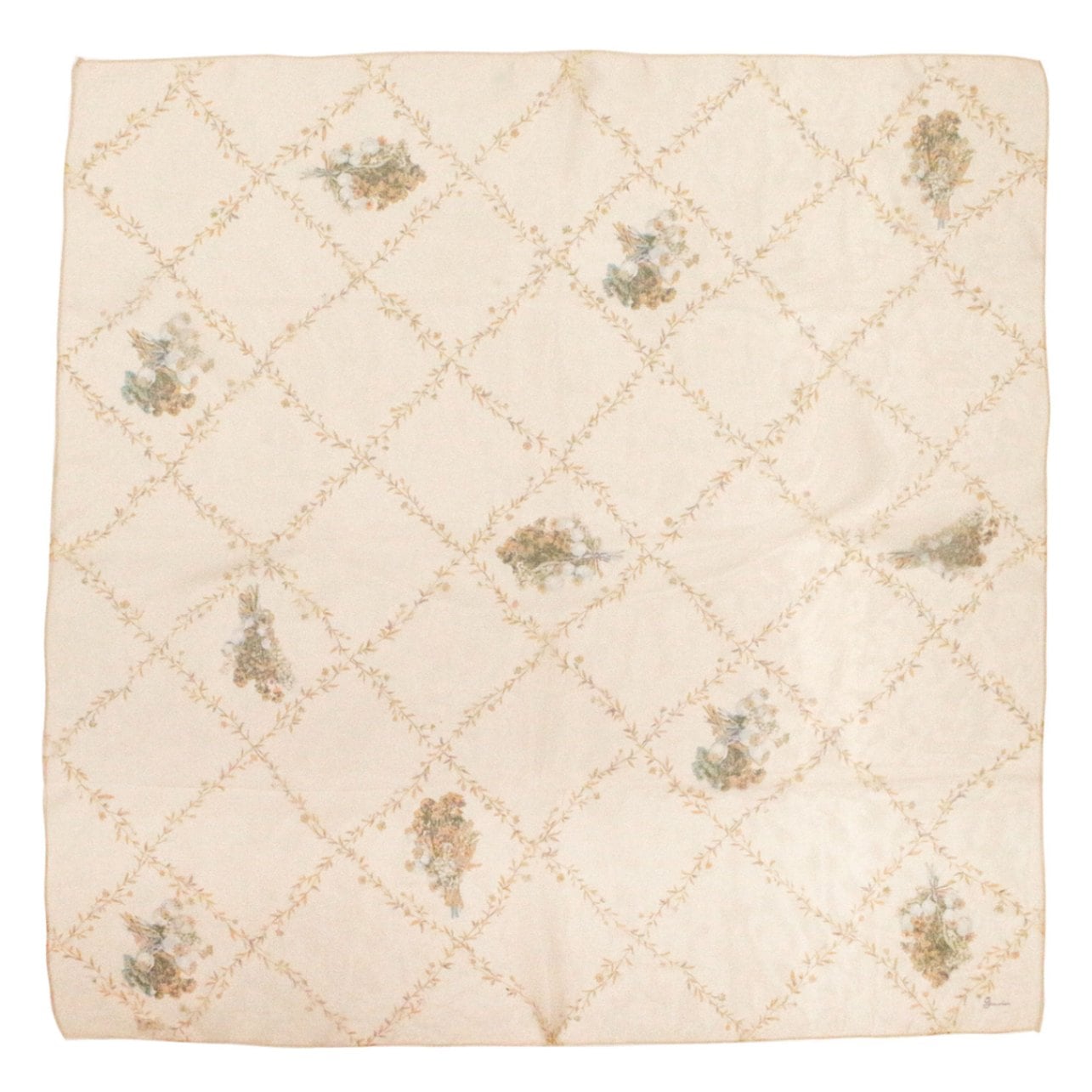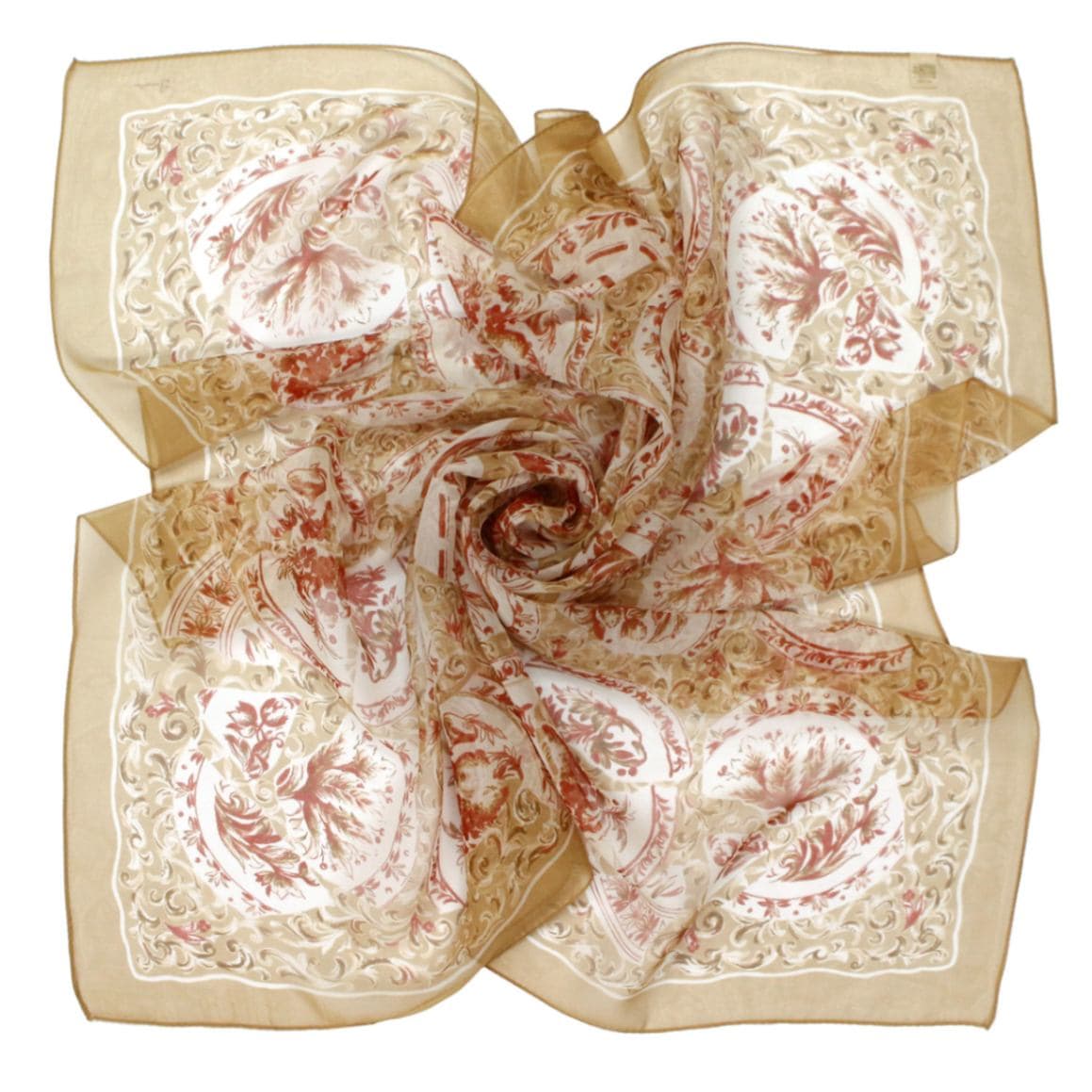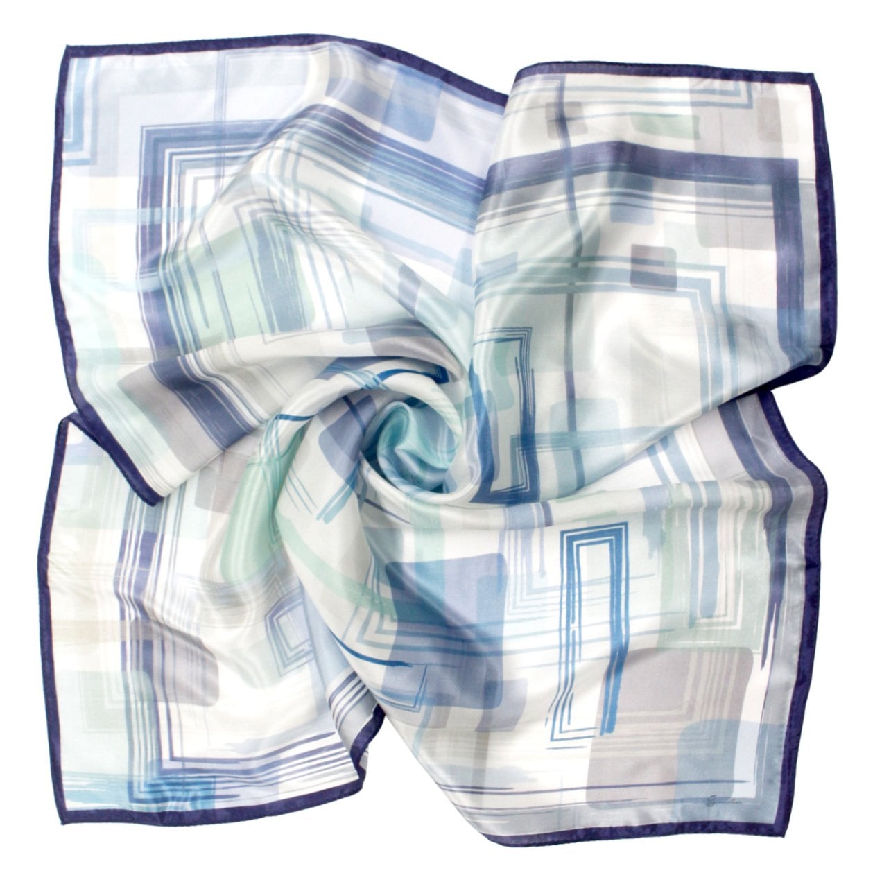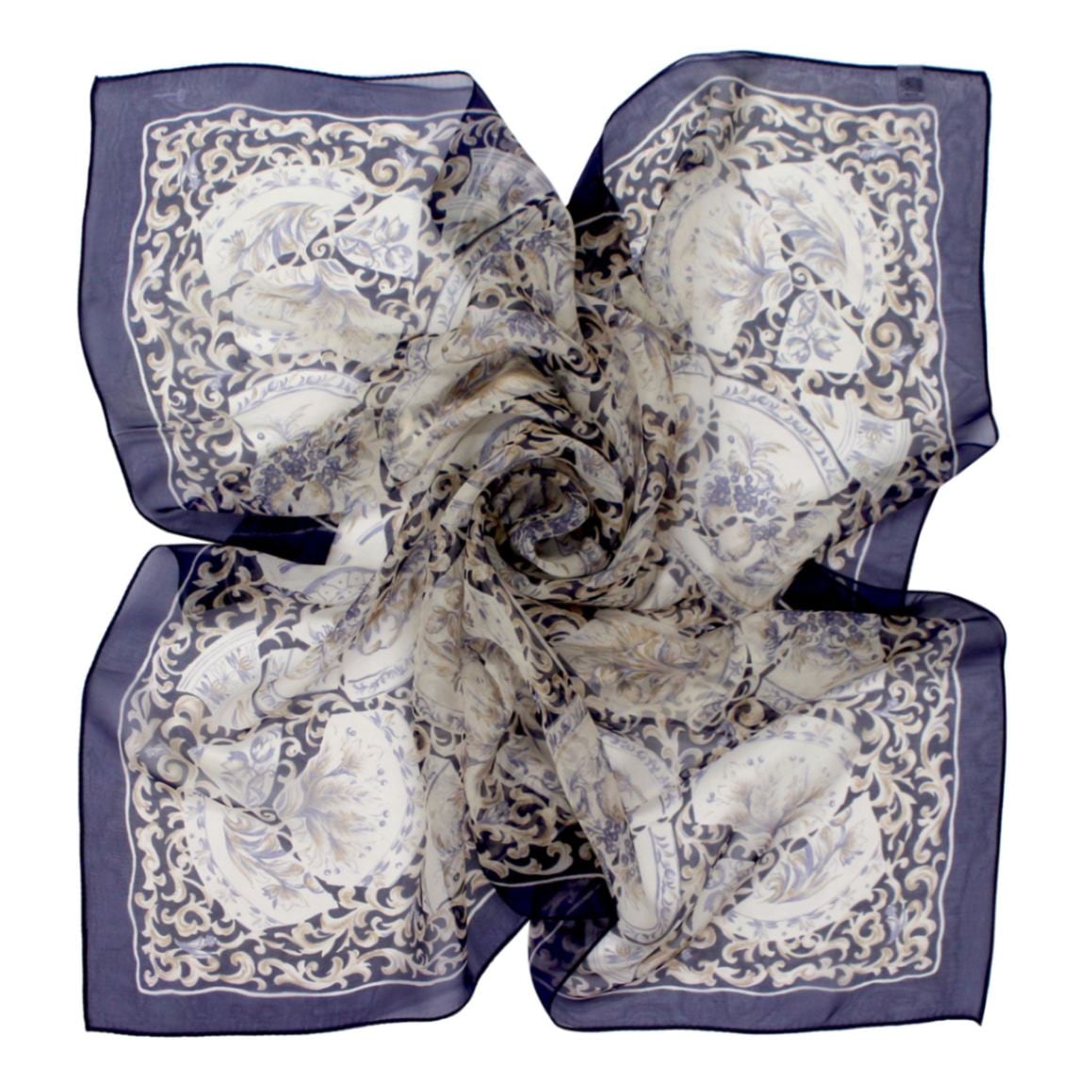 シルクスカーフ 88×88(O-花柄B-サックス/サテンストライプ)
