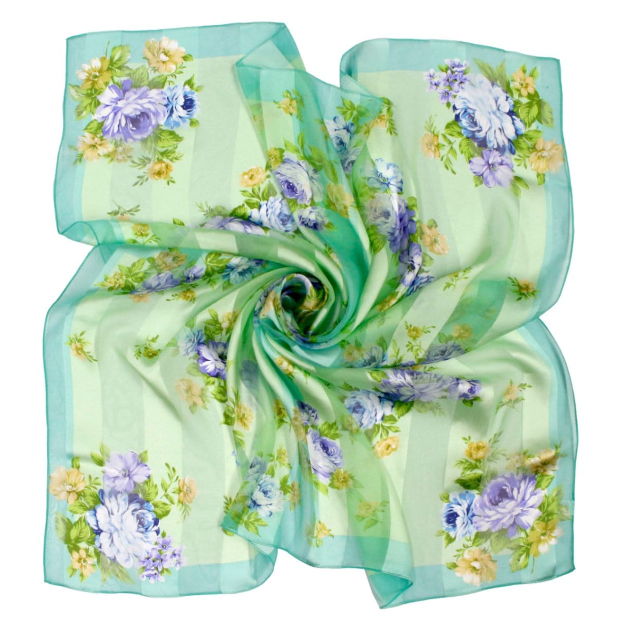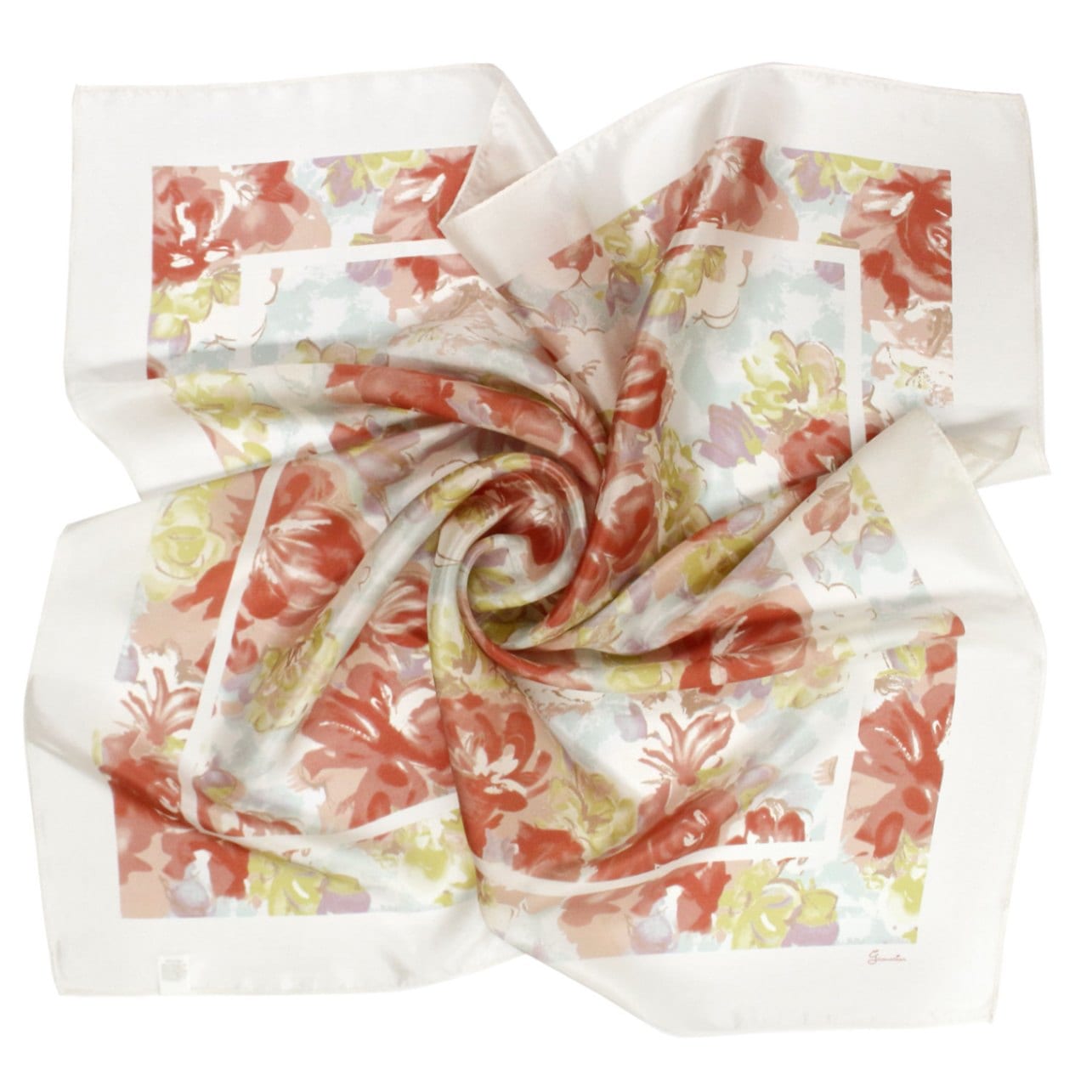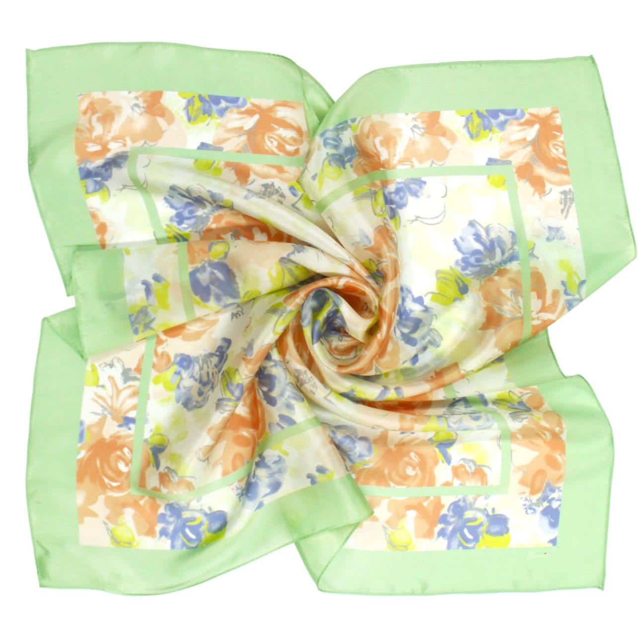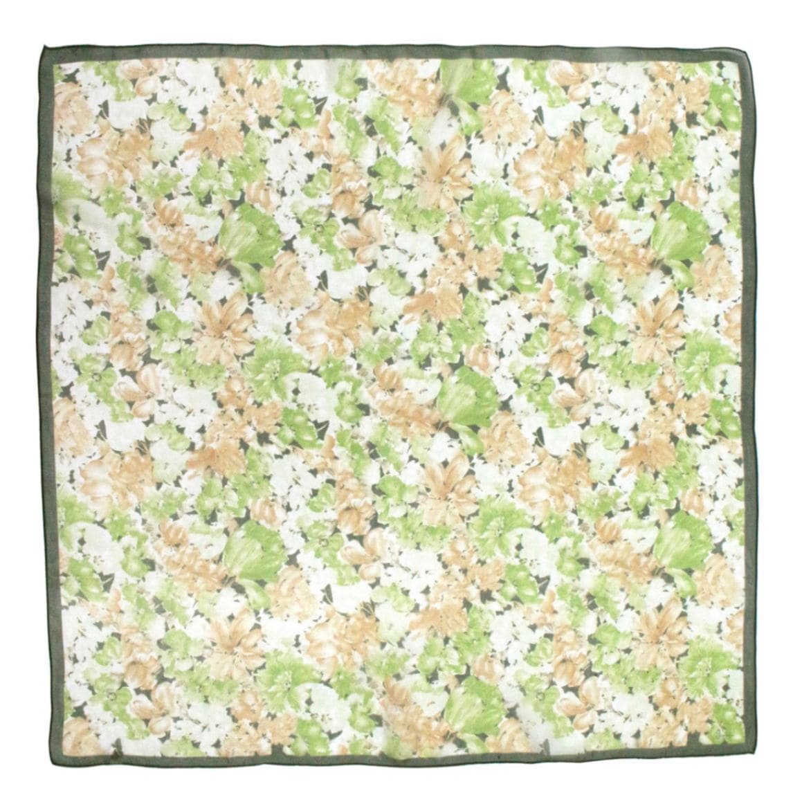 シルクスカーフ 88×88(O-花柄B-グリーン/サテンストライプ)