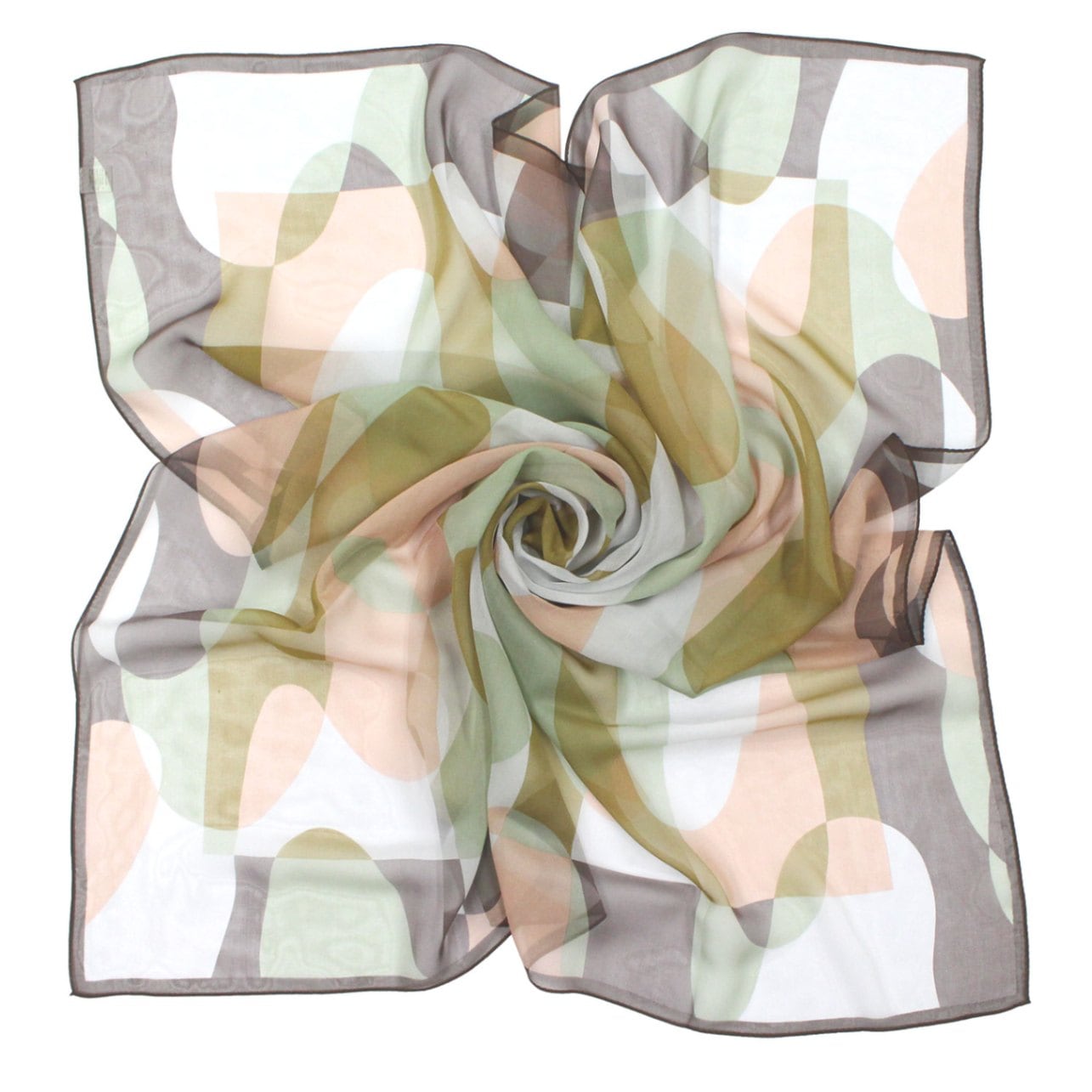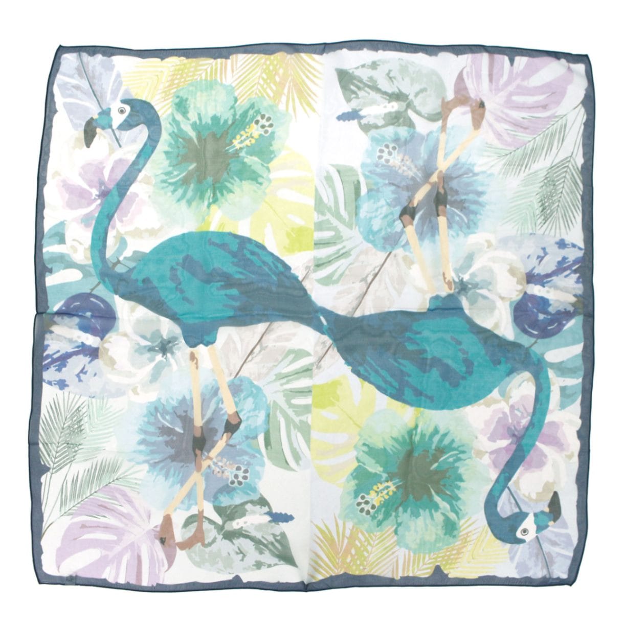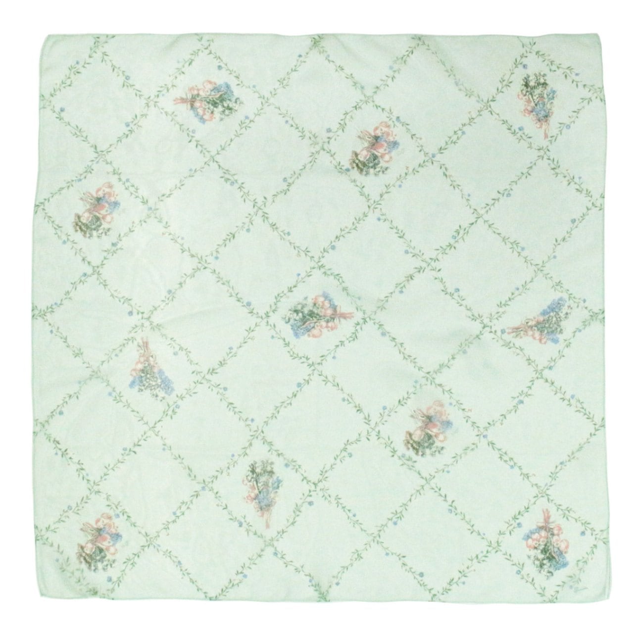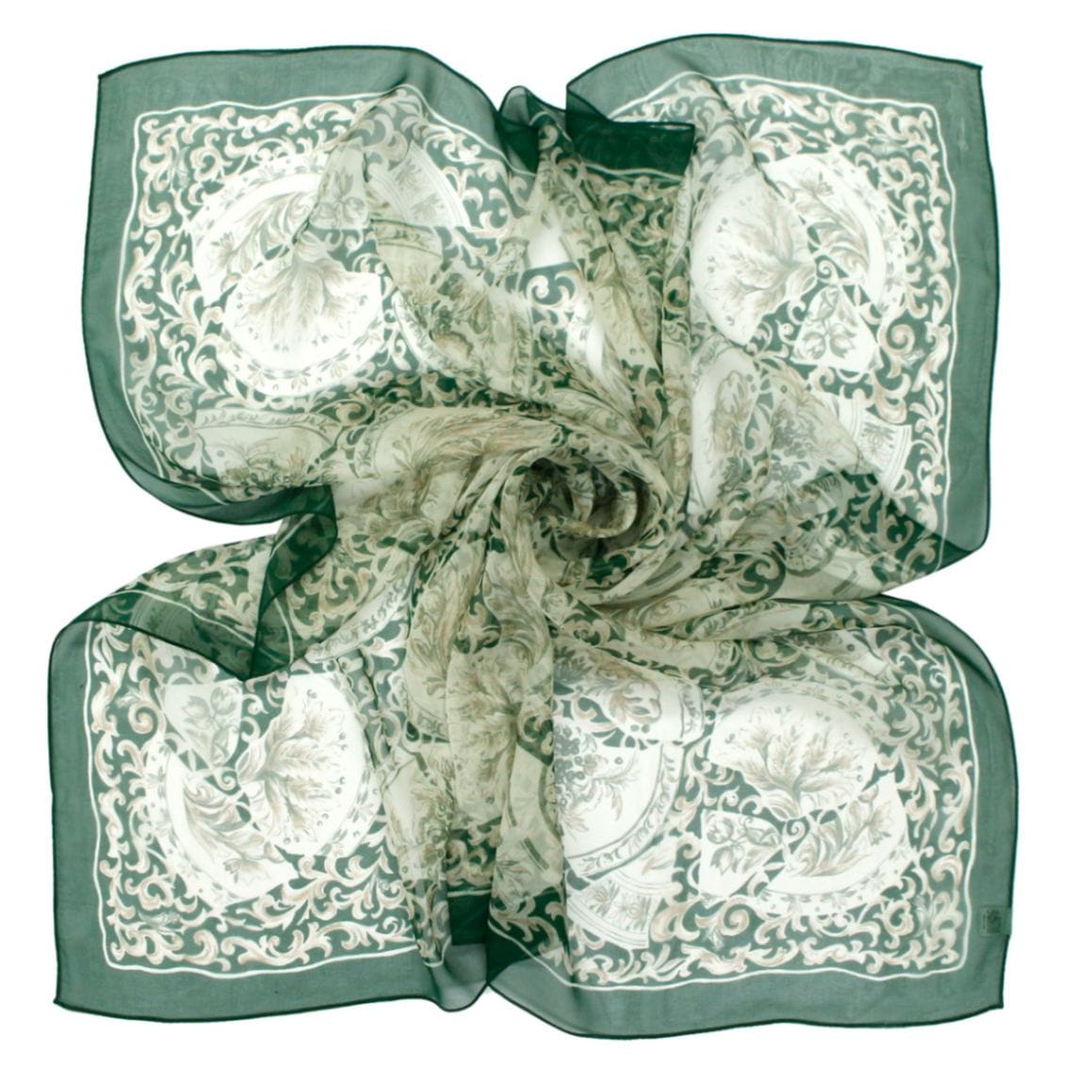 シルクスカーフ 88×88(O-花柄B-グリーン/サテンストライプ)