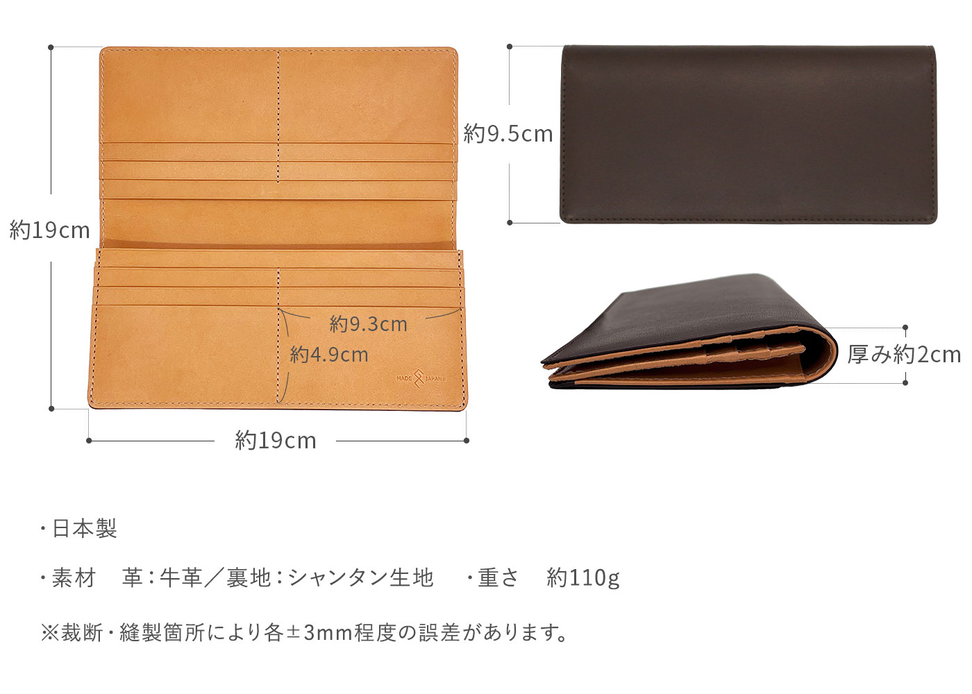 | 素材 | 革:牛革(姫路・たつの) 裏地:シャンタン生地 |